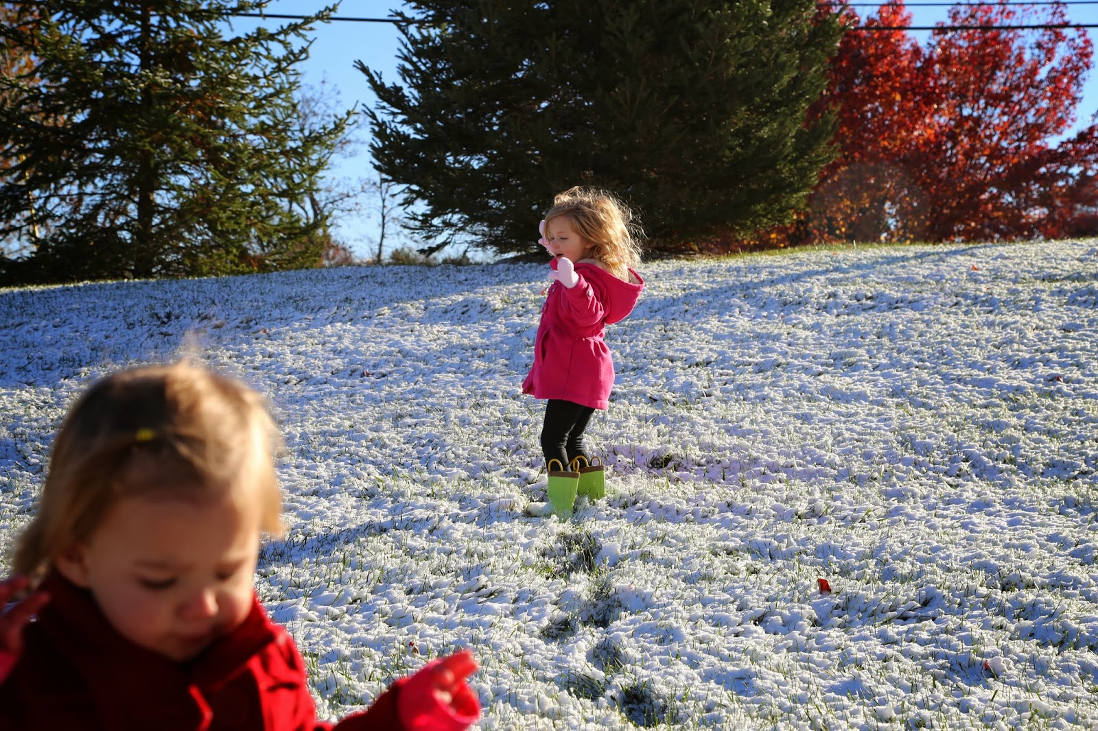 So excited about this upcoming winter. I'm sure I'll be changing my tune soon enough, but right now its perfect because it looks pretty, we can play in it for a second, and its already started melting away completely!